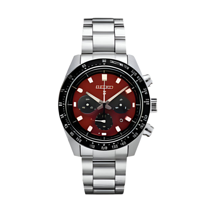 Seiko Men's Red Dial Silver Stainless Steel Band Analog Chronograph Solar Watch