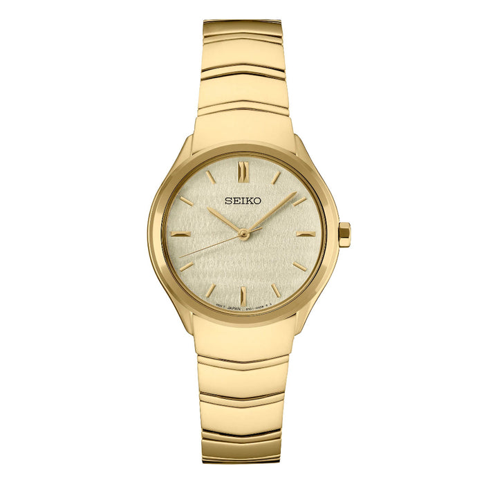 Seiko Women's Cream Dial Gold Stainless Steel Band Quartz Watch - SUR552