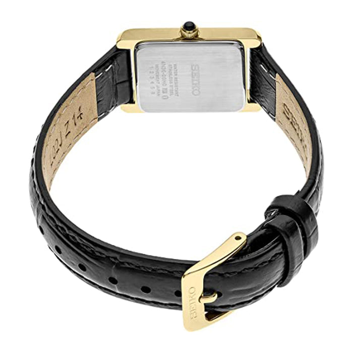 Seiko Women's White Dial Black Band Stainless Steel Quartz Dress Watch