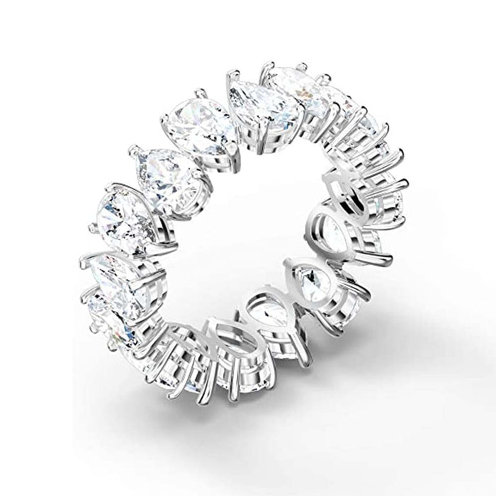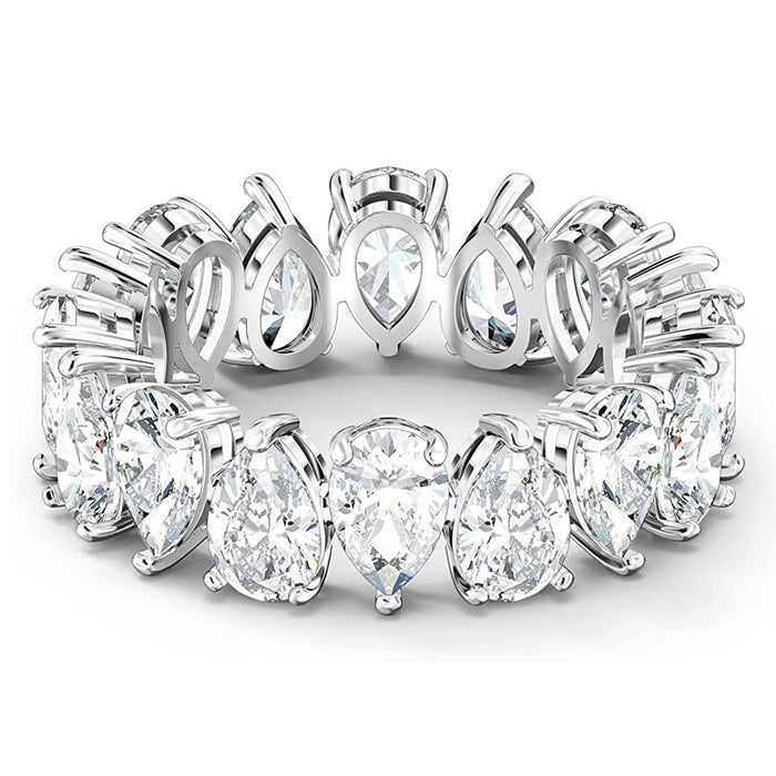 Swarovski Women's White Crystal Stones Rhodium Plated Vittore Pear Shaped Ring - 5563966