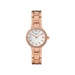 Timex Womens Dress Rose Gold-Tone Bracelet Mother of Pearl Analog Dial Swarovski Crystals Watch - TW2T58500. It's easy to see how this timepiece takes you from day to night. With simple elegance in mind, the mother-of-pearl dial and rose gold-tone bracelet with self-adjustable jewelry links and shimmering Swarovski crystals offers a lasting look for years to come. Rose gold-tone 9mm bracelet with self-adjust clasp fits up to 7.5-inch wrist circumference. Round rose gold-tone 20mm case with crystal-adorned bezel. Mother of Pearl dial with crystal-adorned markers. Mineral glass crystal. Water resistant up to 30 meters- 100 feet.