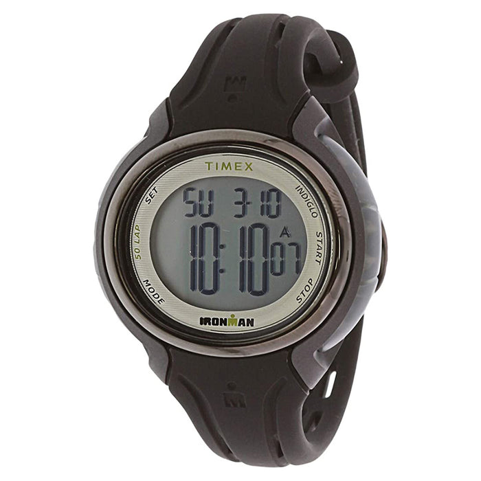 The Timex come with a gray dial black silicone band digital display and Japanese quartz movement. The Timex Ironman Classic 100 features a large display and 5-button quick access to 100-lap stopwatch memory, customizable alarm, and interval/countdown timers. Water resistant to 100 meters with Timex Indiglo backlight. The Timex watch features a Adjustable black 15mm silicone strap fits up all 24-hour countdown timer Customizable alarm; 24-hour time mode; day date & month calendar, Black 38mm case with a gray digital display.